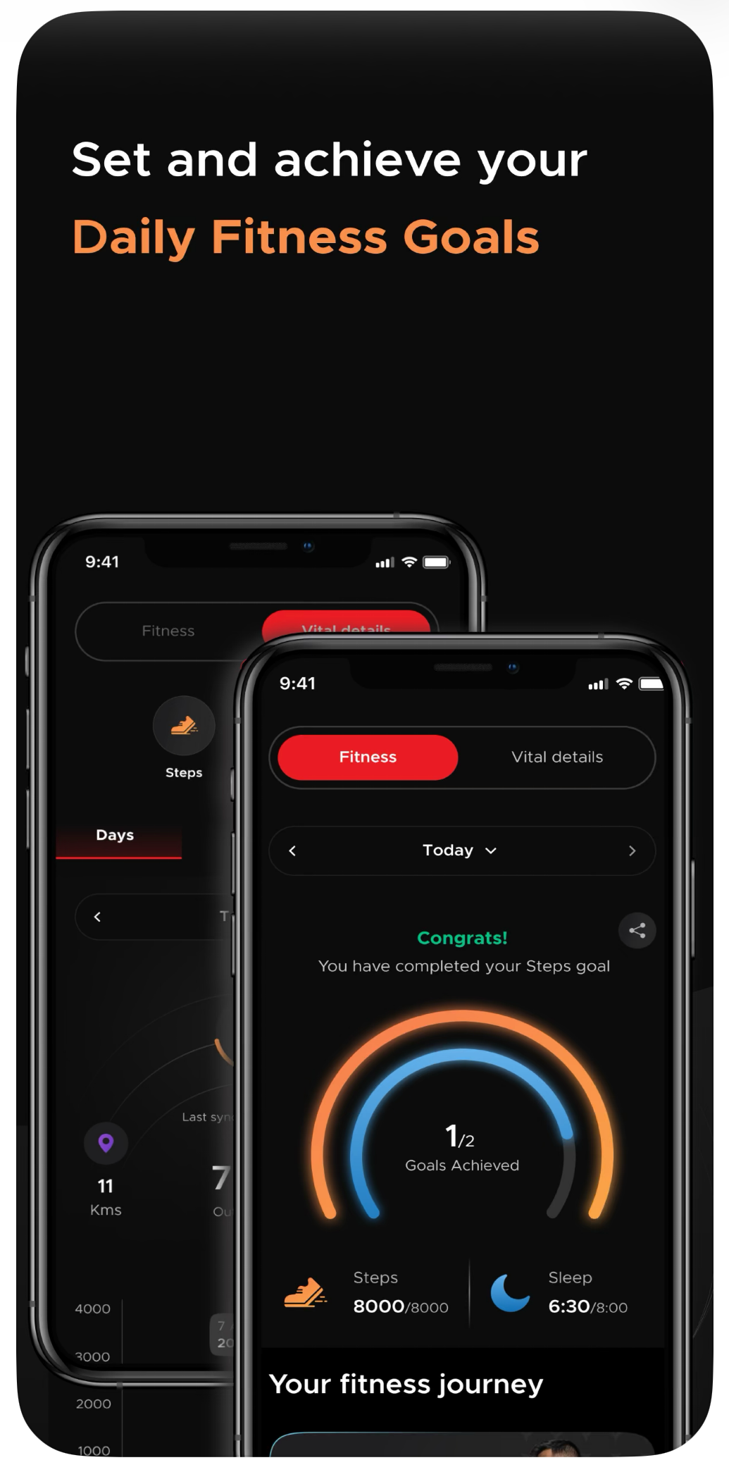 Track your Steps, Distance and Calories burnt along with support for multiple activities like Running, Cycling, Walking, Yoga, and many more.